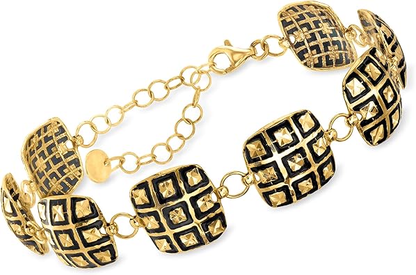 Ross-Simons Italian Black Enamel Square-Pattern Bracelet in 18kt Gold Over Sterling. 7 inches