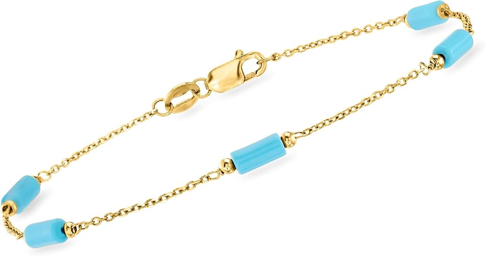 Ross-Simons Italian Simulated Turquoise Bead Station Bracelet in 18kt Yellow Gold