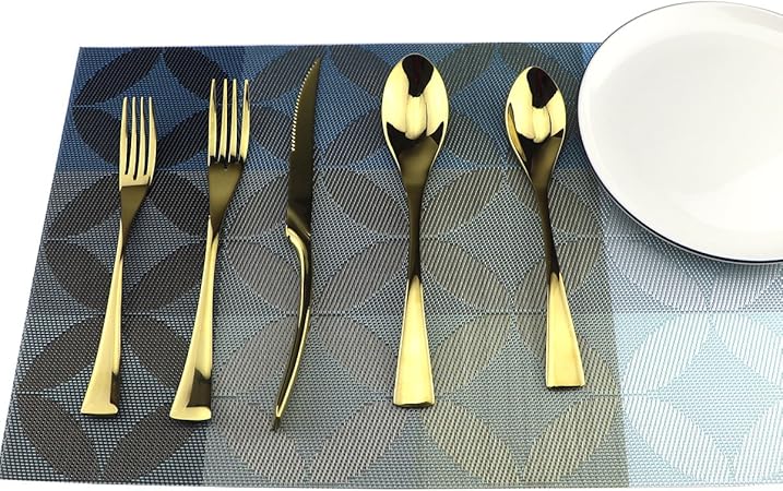 Cutlery Set 18/10 Stainless Steel Flatware Set Kitchen Silverware Tableware Dinnerware Utensil Set Steak Knife, Mirror Polished Gold, 20-Piece Set, Service for 4