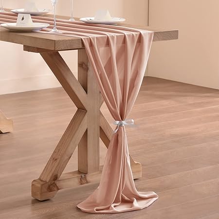 Socomi 10ft Rose Gold Chiffon Table Runner 29x120 Inches Wedding Runner Sheer Bridal Shower Decorations