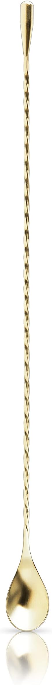 Viski Gold Weighted Stainless Steel Barspoon, Japanese Style Twisted Stem Handle, Teardrop Weight