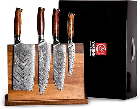 YARENH Knife Set with Magnetic Block 5 Piece, Professional Kitchen Knife Set, 73 Layers Damascus High Carbon Stainless Steel, Natural Sandalwood Handle, Sharp Chef Knife
