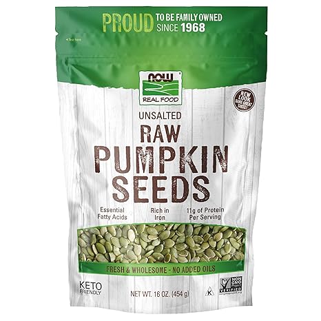 NOW Foods, Pumpkin Seeds, Raw and Unsalted, Essential Fatty Acids, Rich in Iron, Excellent Source of Protein, Certified Non-GMO, 1-Pound (Packaging May Vary)