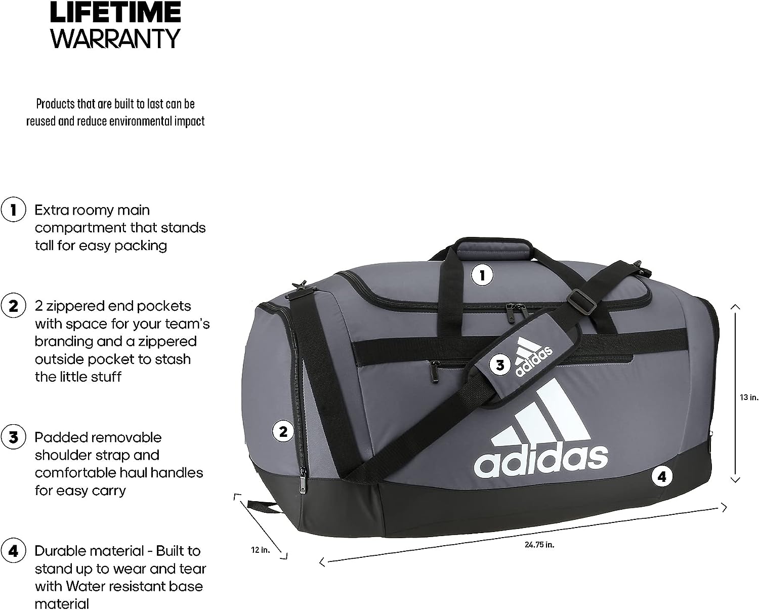 Keep your belongings nearby whether you're headed to the gym or a weekend getaway. this newly updated duffel bag features zip end pockets, a water-resistant base and a roomy interior to organize your gear and other essentials. padded shoulder straps offer comfortable carrying.