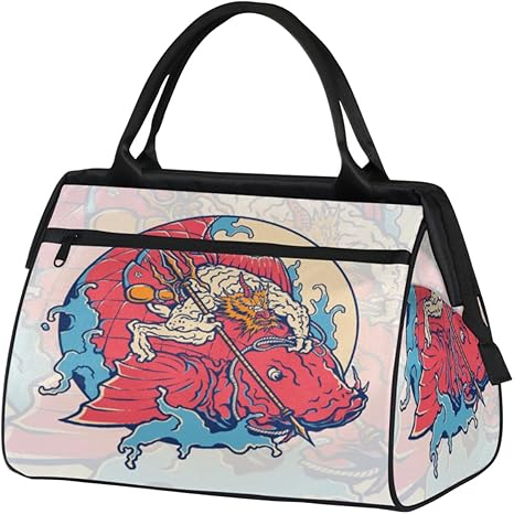 Carp Dragon Pattern Travel Gym Bag - Large Capacity Tote Bag for Men, Women, Girls - Shoulder Weekender Overnight Bag for Travel, Yoga, School, Mommy Hospital Bag for Labor and Delivery