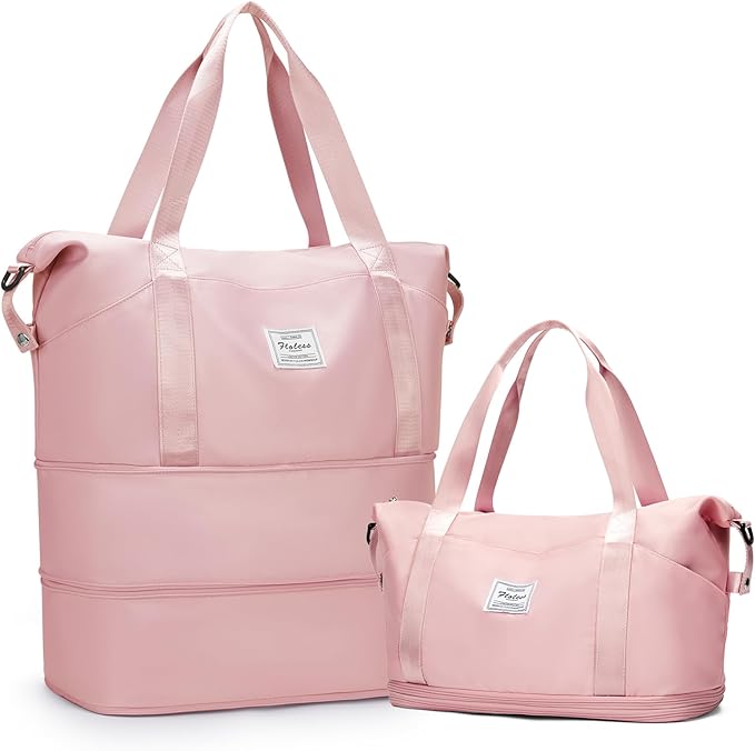 Expandable Travel Duffle Bag for Women Men, Large Gym Bag Travel Tote Bags, Waterproof Carry On Personal Item Bag Airline Approved, Workout Weekender Bag for Overnight Trips with Luggage Sleeve, Pink