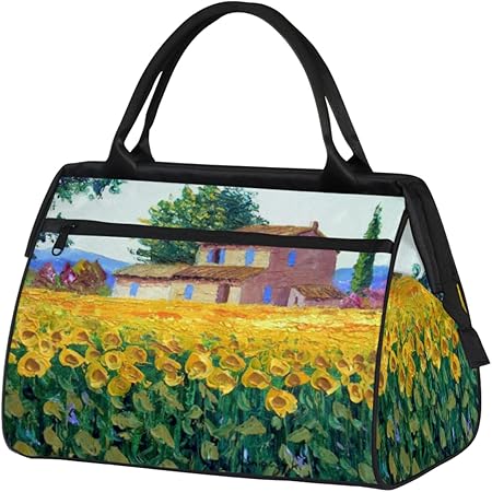 Letter Sunflower Retro Travel Gym Bag - Large Capacity Tote Bag for Men, Women, Girls - Shoulder Weekender Overnight Bag for Travel, Yoga, School, Mommy Hospital Bag for Labor and Delivery