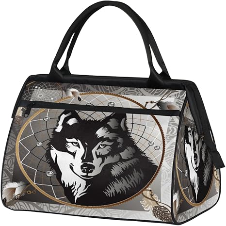 Wolf Dream Catcher Travel Gym Bag - Large Capacity Tote Bag for Men, Women, Girls - Shoulder Weekender Overnight Bag for Travel, Yoga, School, Mommy Hospital Bag for Labor and Delivery