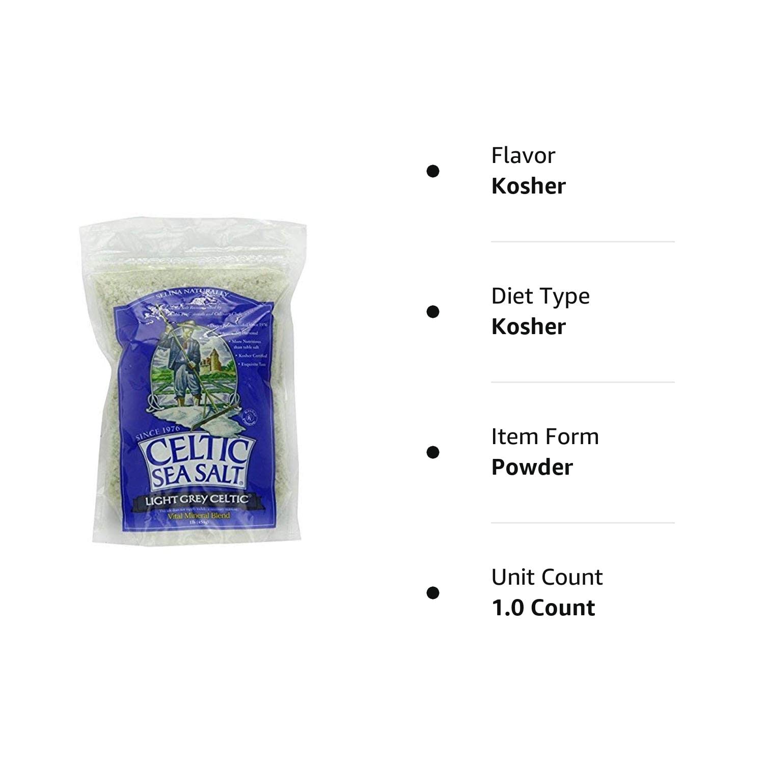 Light Grey Celtic coarse sea salt, 1 lb. bag - Pack of 2