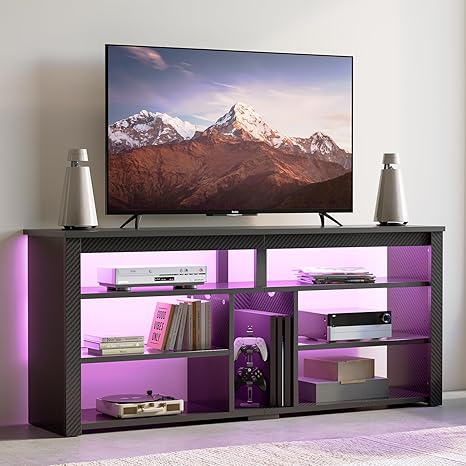 Bestier LED Tall TV Stand, Entertainment Center for 55/60/65 inch TV, Gaming TV Console with Storage for PS5, Adjustable Shelf Modern High TV Cabinet for Living Room Bedroom, Carbon Fiber Black