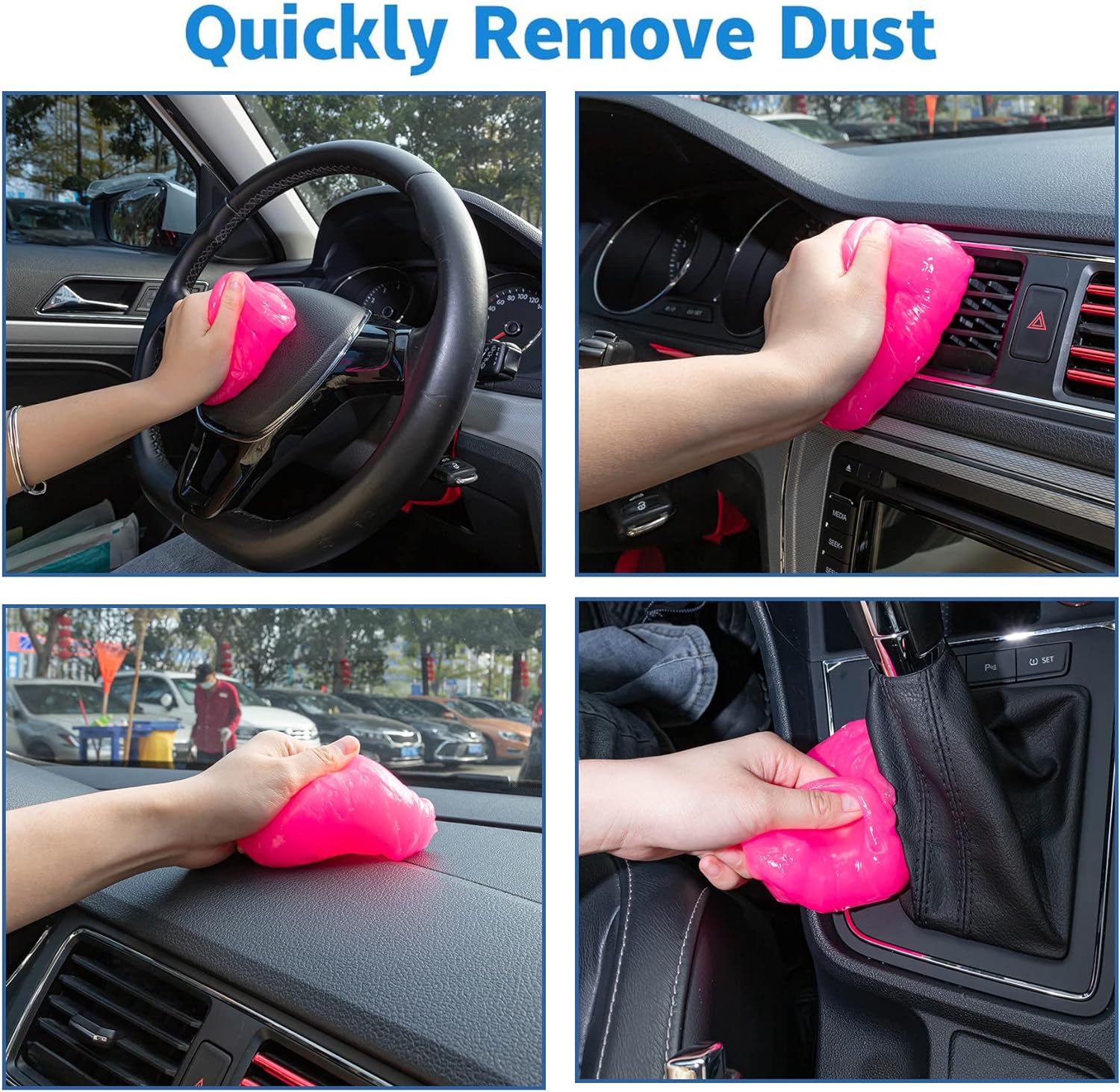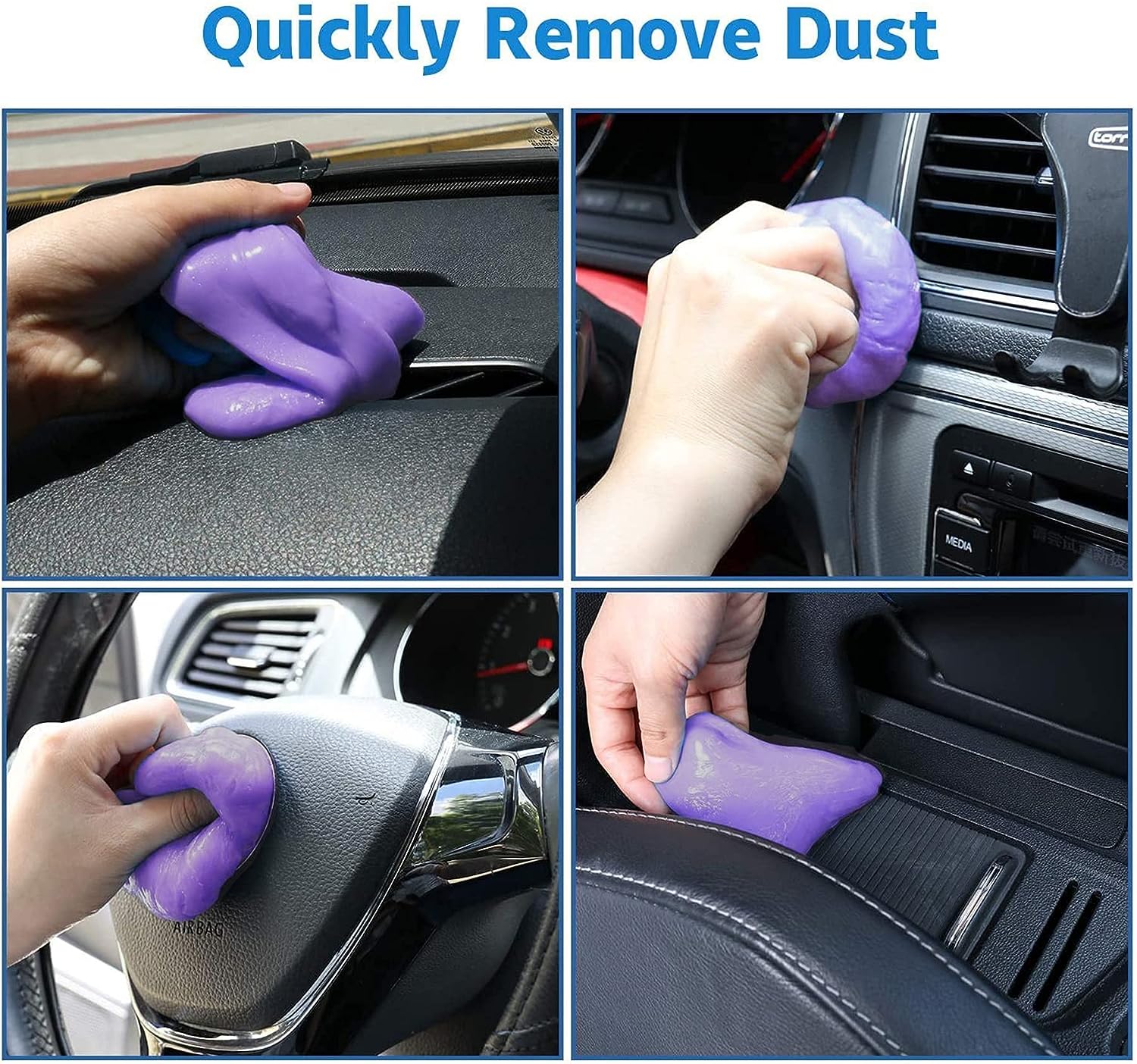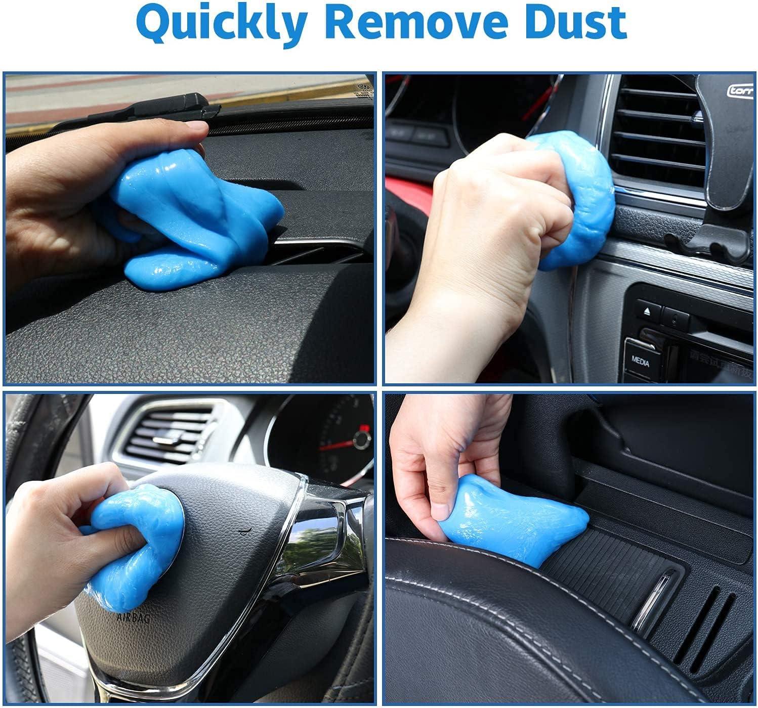 • Easy to use: Compared to regular car cleaning tools, this car cleaning gel is softer and easier to clean dirt from crevices in your car. First, take a small piece of gel and knead it before use, then slowly press the cleaning gel into a sturdy surface such as the car's air vents, and then slowly pull it out and the dust will be carried away by the gel.