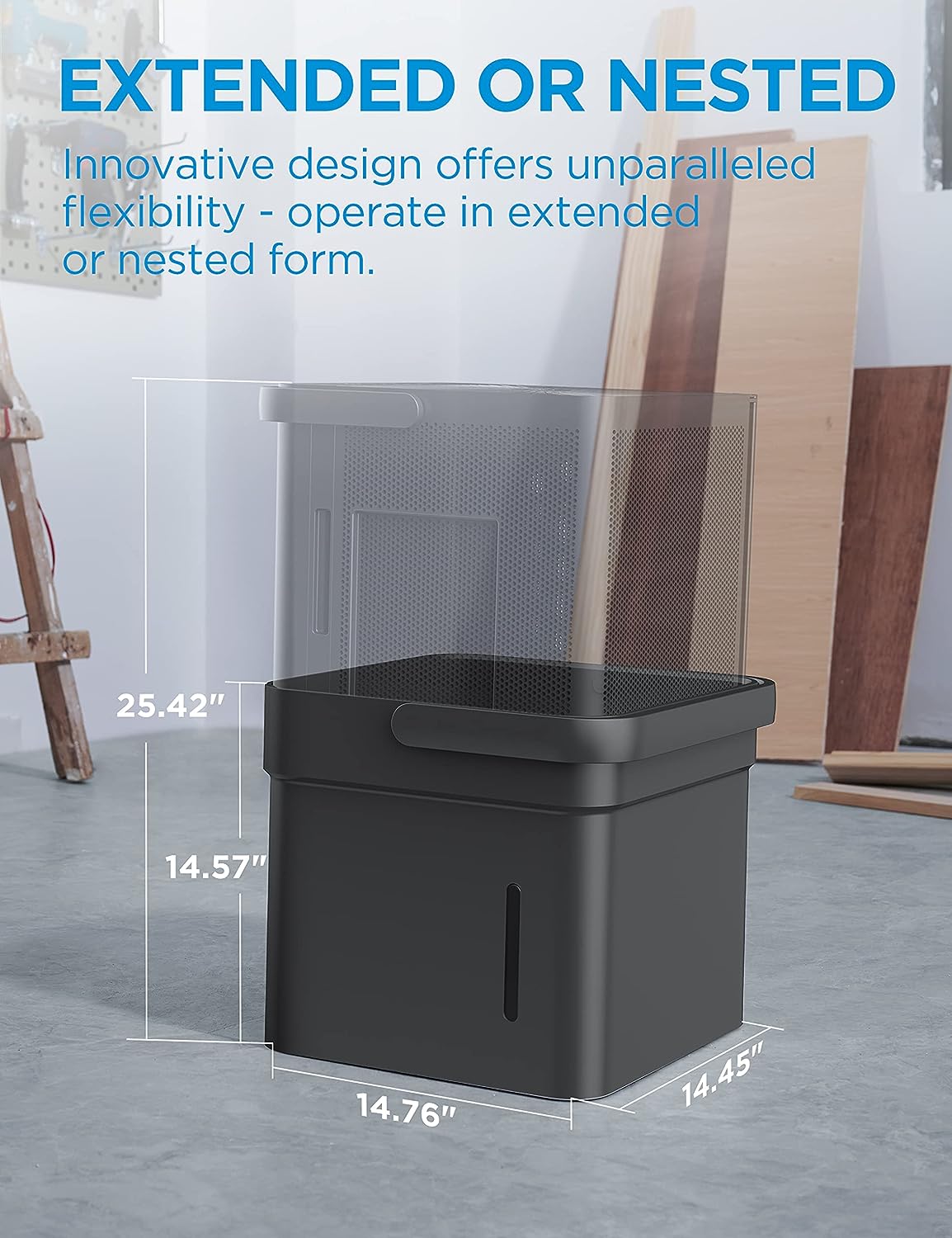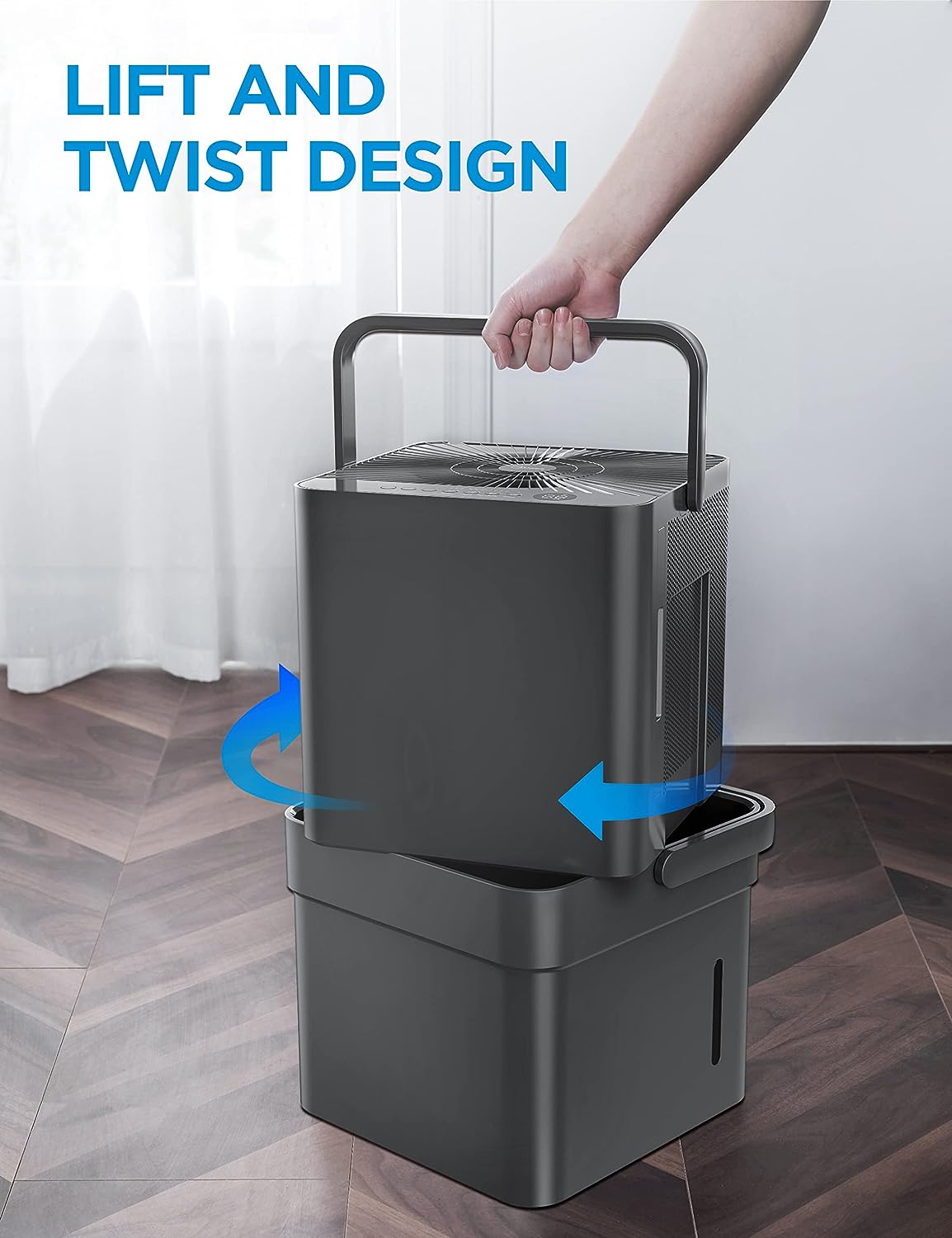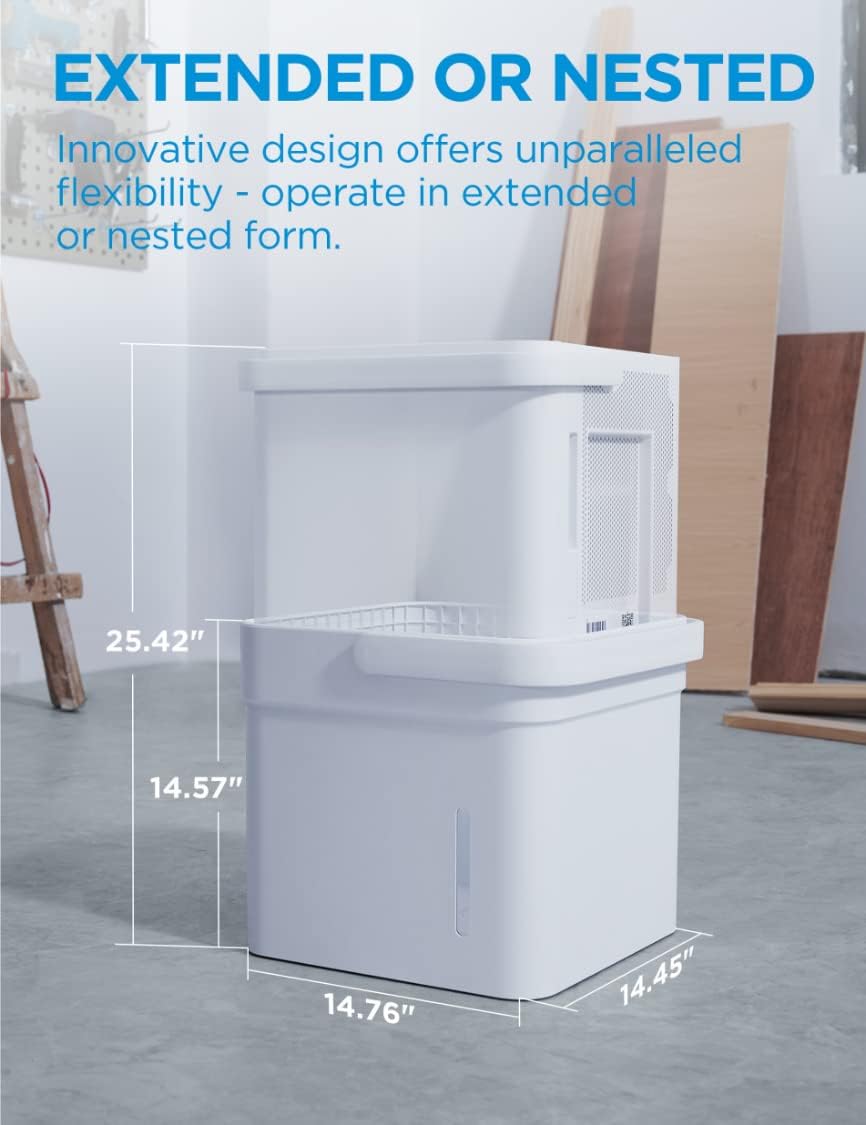 • LIFT AND TWIST- World's first extendable dehumidifier offers unparalleled flexibility - operates in extended or nested form. You can easily find a place to store the unit when the space becomes dry, or extend it to its full capacity whenever you need it