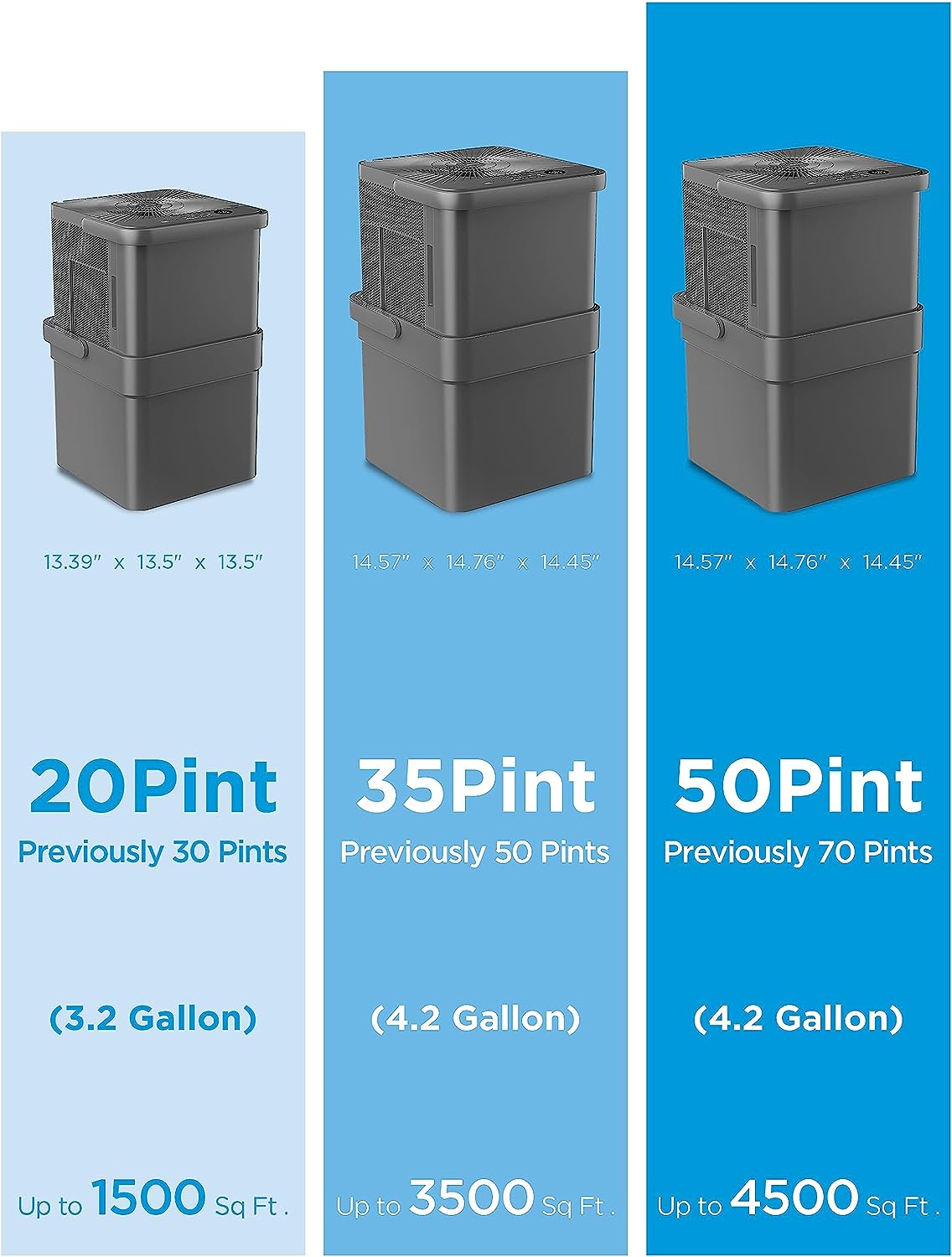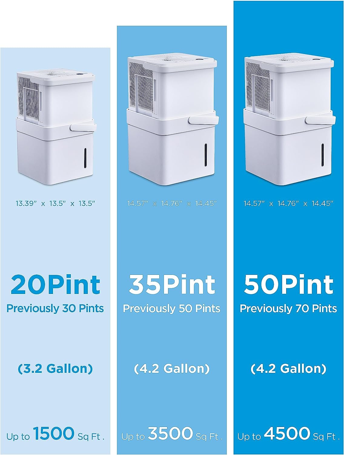 • 4,500 SQUARE FEET OF COVERAGE - This Midea dehumidifier collects 20 pints of water a day and adjusts humidity from 35% to 85%. This unit is perfect for use in the basement, bathroom, bedroom, or crawlspace