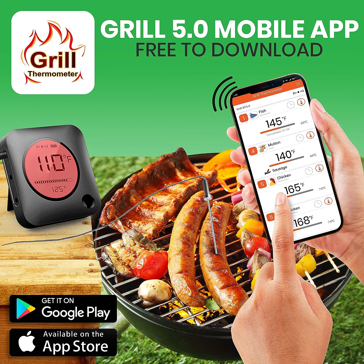 • DONE SMARTPHONE ALARM: When the meat reaches the set temperature, your device will send notifications & alarm via the Grill 5.0 app so you can take the meat from gas, charcoal BBQ, smoker or oven timely. Works w/ Apple iPhone / Android smartphone