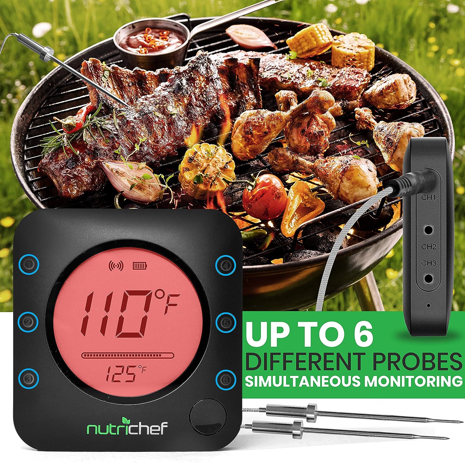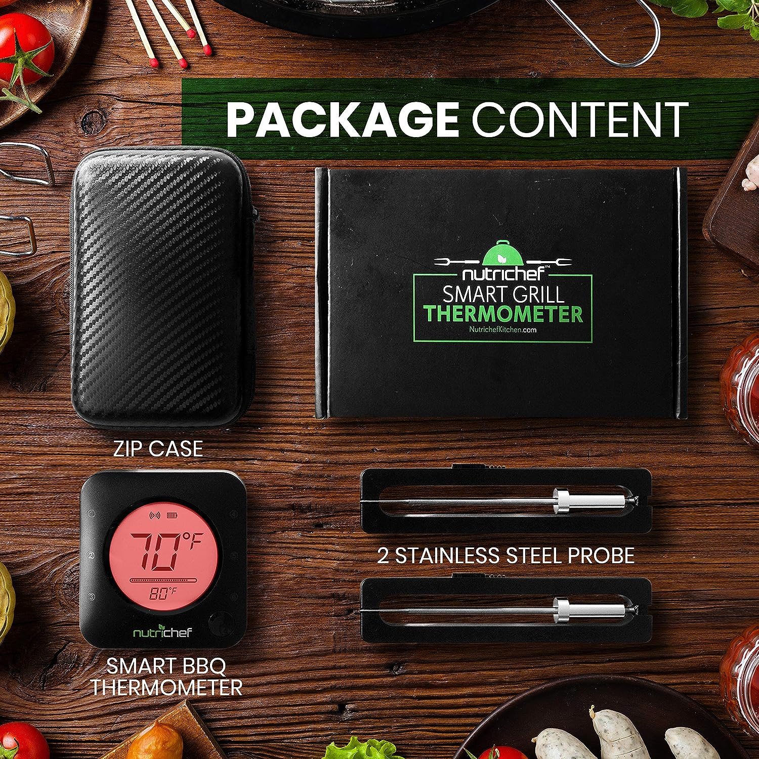 Nutrichef Bluetooth Meat Thermometer for Grilling and Smoking with Zip Travel Case, Wireless Meat Probe with LCD Display
