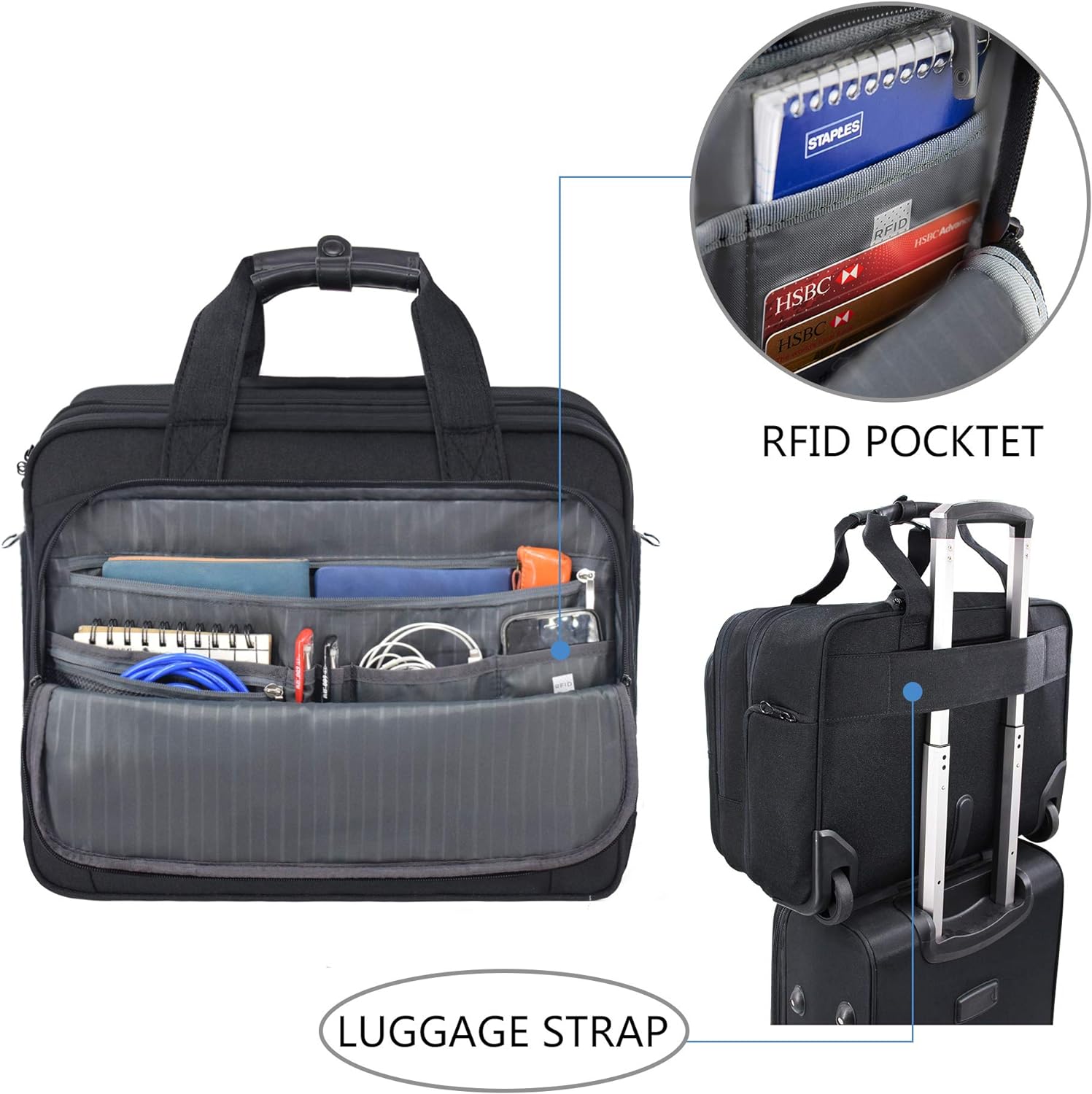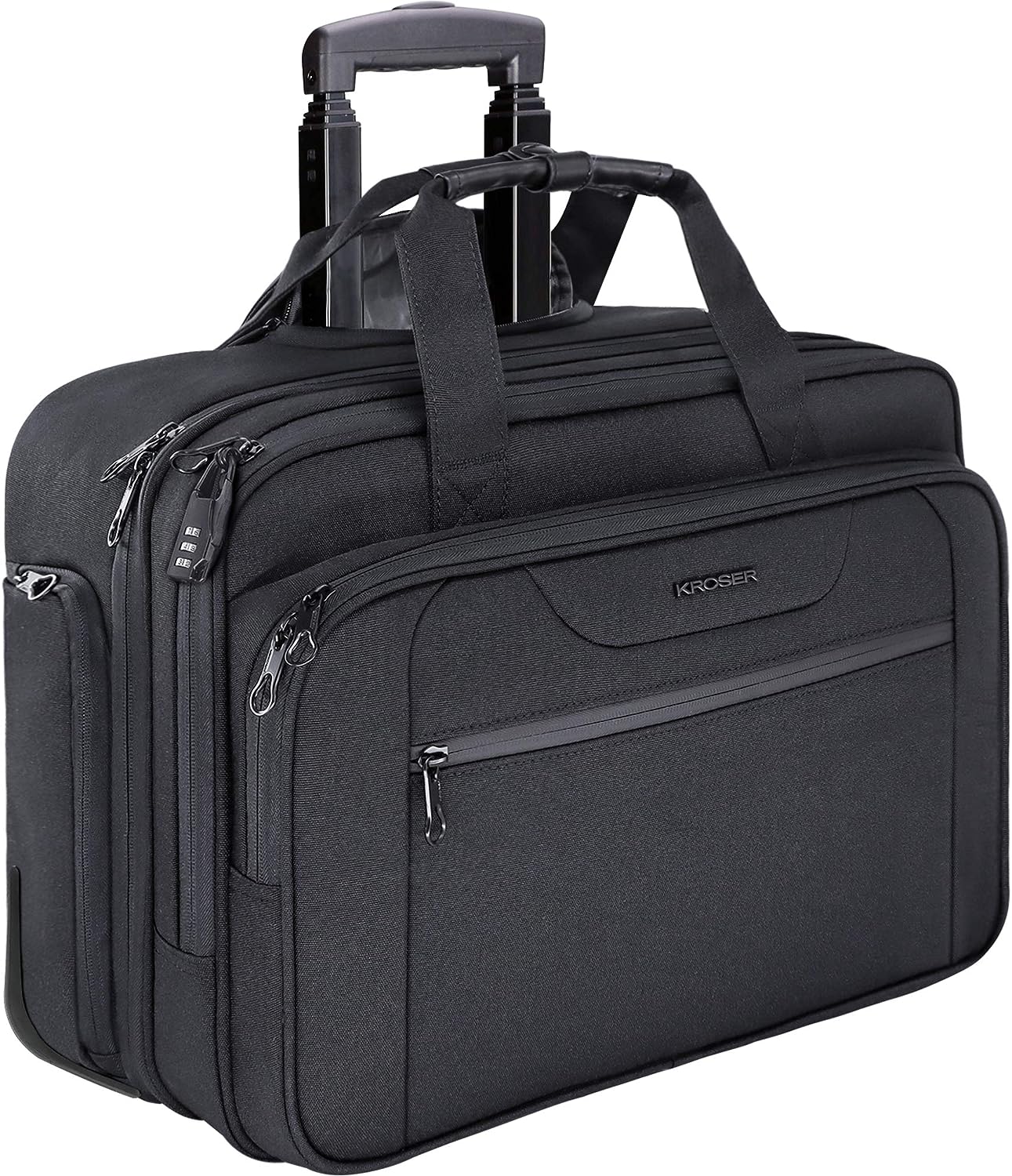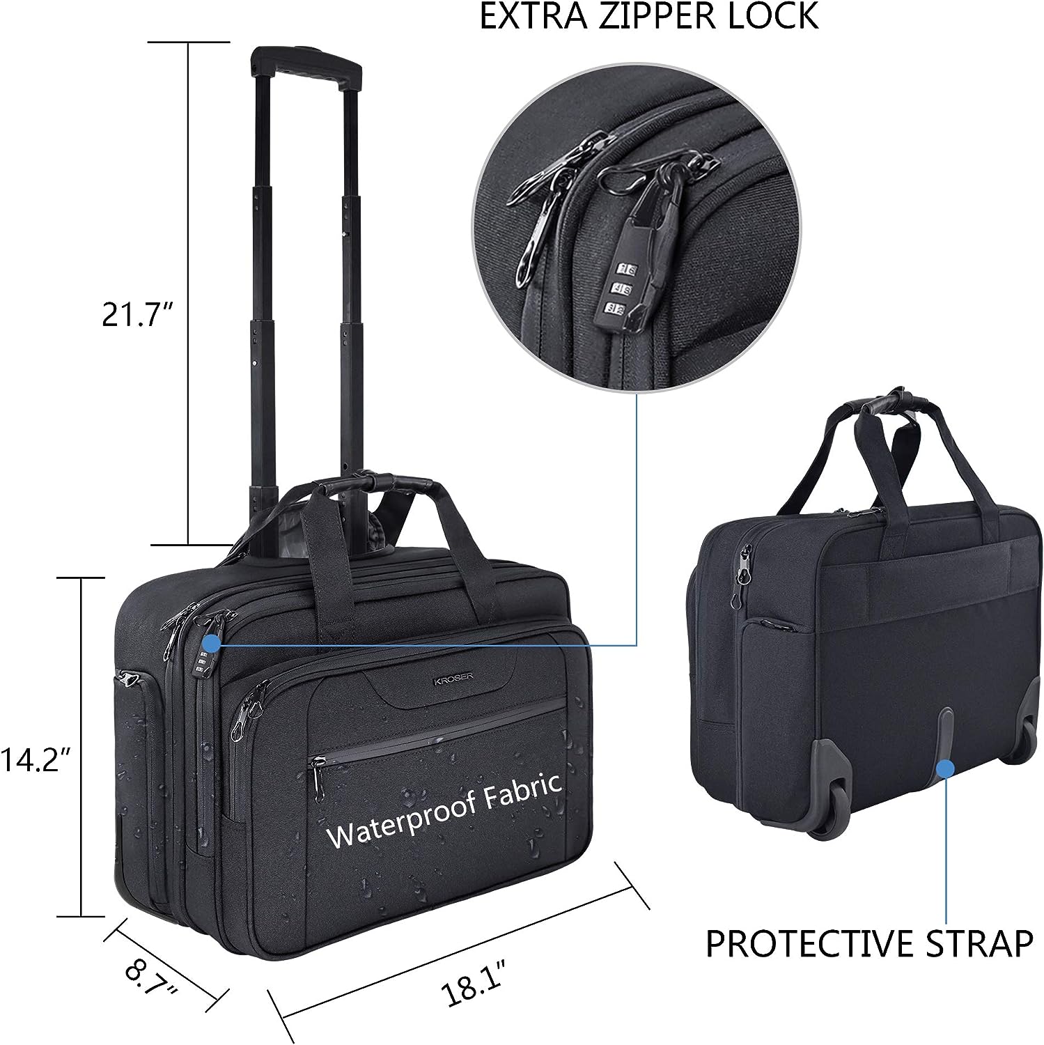 KROSER Rolling Laptop Bag Premium Wheeled Briefcase Fits Up to 17.3 Inch Laptop Water-Proof Overnight Roller Case Computer Bag with RFID Pockets for Travel/Business/Men/Women-Black