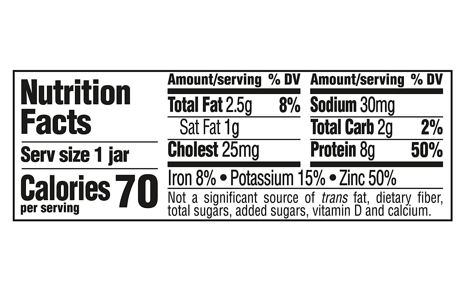 • WHOLESOME SOURCE OF PROTEIN: Our meats & poultry are among the best food sources for zinc for babies. Inspected by the USDA, they contain 7 grams of protein per jar & no added salt, artificial flavors or colors.
