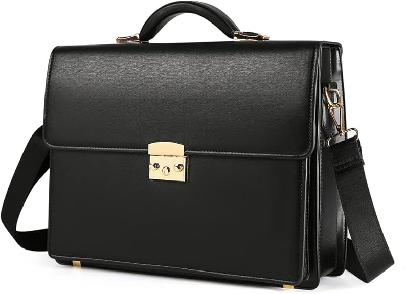 Briefcases for Men Business Mens Leather Briefcase Locking Black Laptop Messenger Bag Lawyer Hard Case