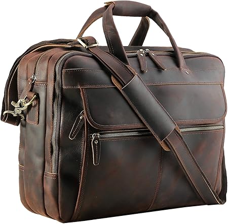 Polare 18'' Thick Full Grain Leather Fit 17.3" Laptop Business Briefcase Work Bag Overnight Bag For Men