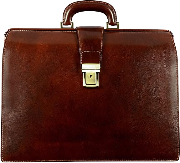 Time Resistance Leather Lawyer Briefcase - Italian Handmade Laptop Briefcase for Men and Women - Attache Case - Doctor Bag