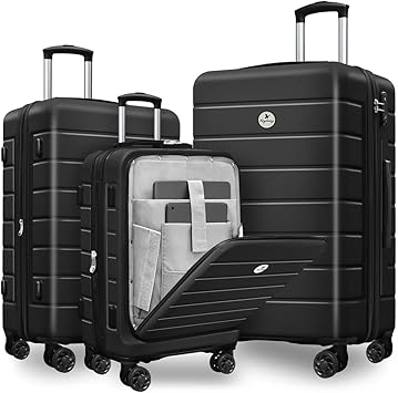 Classic 3-Piece Luggage Set Lightweight Hardside Suitcase TSA Lock Spinner Wheels, 20" Expandable Carry-On Luggage with Quick Access Front Open Pocket for Travel Business, 20/24/28 inch, Black
