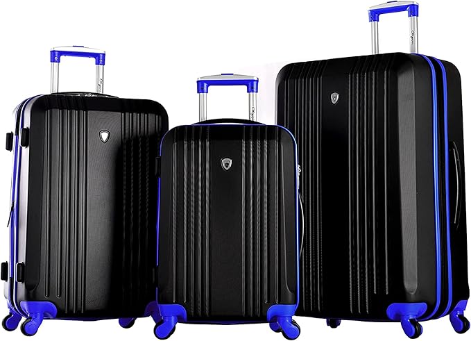 Olympia U.S.A. Apache 3-Piece Expandable Lightweight Hardside Luggage Set with Double 4 Wheels Spinner Suitcase and Hidden Laptop Compartment, Black/Blue