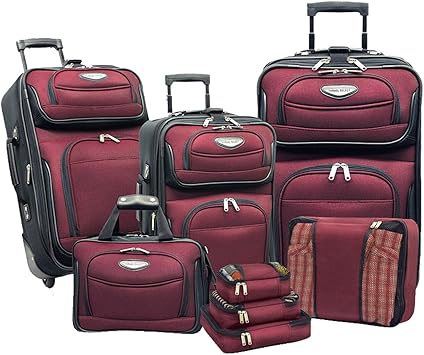 Travel Select Amsterdam Expandable Rolling Upright Luggage, Burgundy, 8-Piece Set