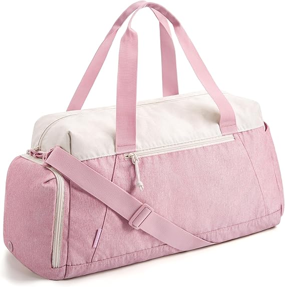 BAGSMART Gym Bags for Men Women, Foldable Travel Duffle Bag, Lightweight Weekender Duffel Bag With Shoe Compartment, Water Resistant Workout Duffle Sports Bag for Travel Yoga, Dark Pink