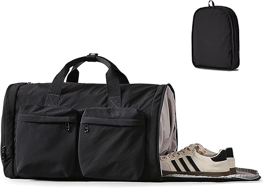 Black Gym Bag for Women Men with Shoes Compartment, 3 in 1 Carry on Travel Duffel Bags with Trolley Sleeve, Lightweight & Water Resistant Gym Duffel Bag for Travel, Sports, Fitness & Workout