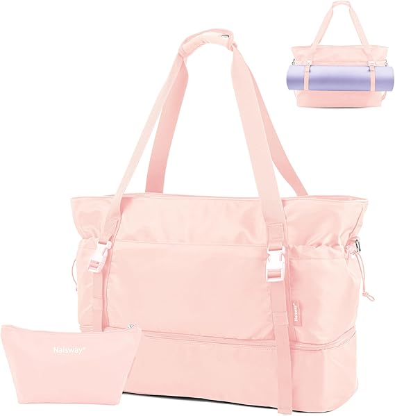 Gym Bag for Women Sports Travel Duffle Bag Tote Bag with Shoes Compartment and Wet Pocket, Yoga Mat Bag Overnight Weekender Bag (Pink)
