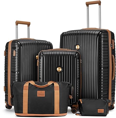 Joyway Luggage Sets 5 Piece Suitcase Set, PP Hardshell Carry on Suitcase Set, Travel Suitcases with Double Spinner Wheels and TSA Lock, Black Brown
