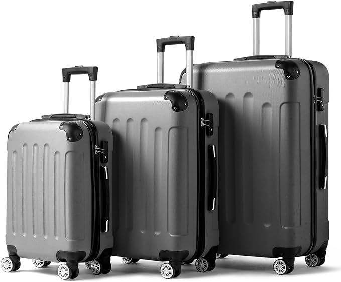 Karl home 3-Piece Luggage Set Travel Lightweight Suitcases with Rolling Wheels, TSA lock & Moulded Corner, Carry on Luggages for Business, Trip, Grey (20"/24"/28")