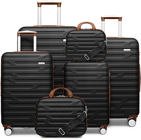 LARVENDER Luggage 6 Piece Suitcase Sets, Expandable Luggage Sets Clearance, Suitcases with Spinner Wheels, Hard Shell Luggage Carry on Luggage Set with TSA Lock Black Brown