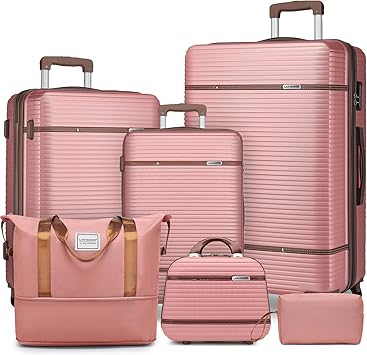 LARVENDER Luggage Sets 6 Piece with Duffel Bag, Expandable(Only 28 & 24") Hardside Luggage with Cosmetic Case 360ŒÁ Spinner Wheels, Durable Luggage Set Clearance For Women Men, Rose Gold