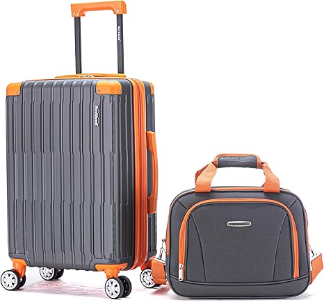 Rockland Hardside Spinner Wheel Carry On with Tote Luggage Set, Charcoal