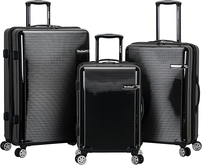Rockland Horizon Hardside Expandable Spinner Wheel Luggage, Black, 3-Piece Set (20/24/28)