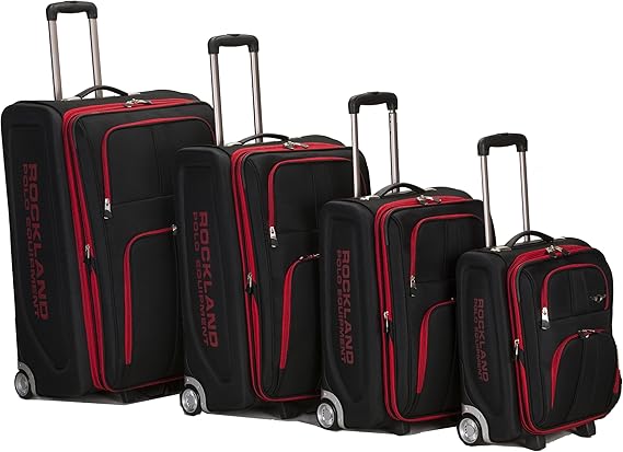 Rockland Polo Equipment Varsity Softside Upright Luggage, Black, 4-Piece Set (18/22/26/30)