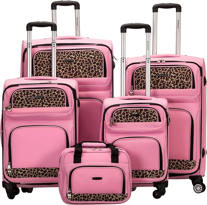 Rockland Softside Spinner Wheel Luggage, Pink, 5-Piece Set (14/29/24/28/32)