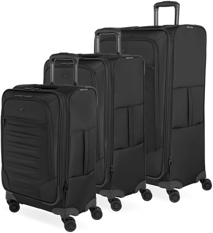 SwissGear Opulence Softside Expandable Luggage with Spinner Wheels, Black, 3-Piece Set (21/25/29)