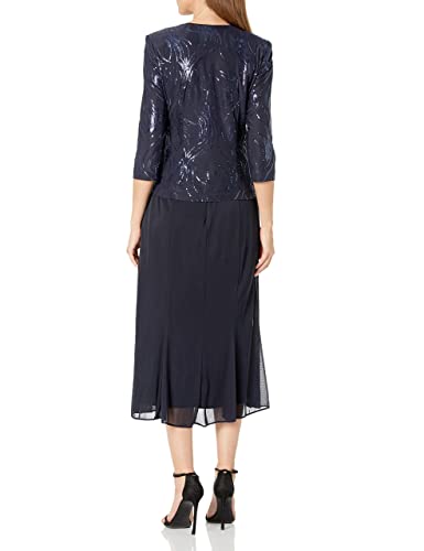Alex Evenings Women's Tea Length Mock Jacket Dress with Button Front, Navy Sequin, 10