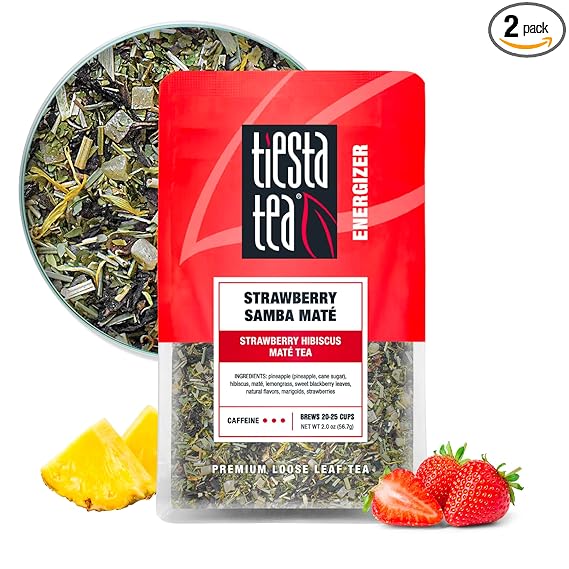 Tiesta Tea - Strawberry Samba Mate - Strawberry Hibiscus Mate Tea - Loose Leaf Tea Blend - High Caffeinated Fruit Tea - Make Hot or Iced Tea Up to 25 Cups - 2 oz Resealable Pouch