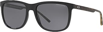 Armani Exchange Man Sunglasses Shiny Grey Frame, Mirror Black Lenses, 57MM