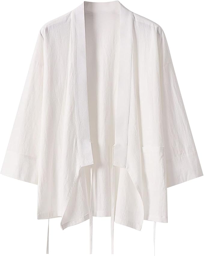 Men's Cotton Linen Shirt Summer Kimono Cardigan Japanese Jackets Casual Cotton Open Front Lightweight Linen Yukata for Men