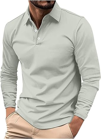 Men's Long Sleeve Polo Shirt Classic Regular Fit Casual Shirt Summer Fall Solid Sport Shirt Trendy Button Lapel Tops