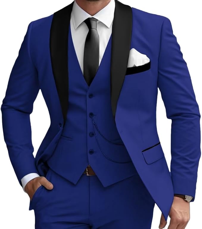 Mens 3 Pieces Classic Suit Black Satin Collar Wedding Blazer Grooms Jackets Vests Pants Suits