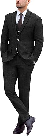 Mens Linen Suit Beach Wedding Summer 3 Pieces Light Weight Jacket Vest Pant Homecoming Tuxedo