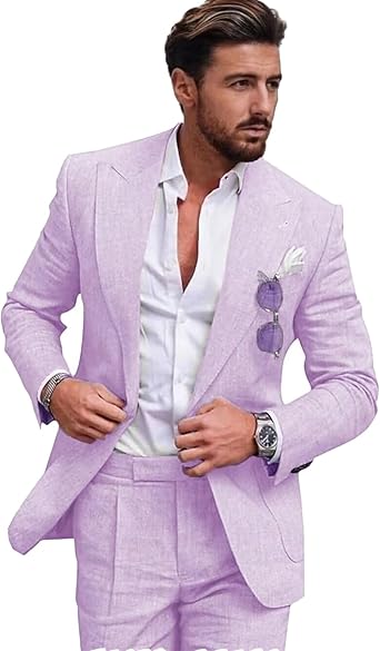 Mens Linen Suit for Beach Slim Fit 2 Piece Wedding Tuxedo for Men Casual Linen Suit Prom Party Suit