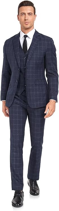 Men's Suit Set, 3 Pieces Plaid Suit for Men Slim Fit Formal Bussiness Wedding Suit Prom Tuxedos Suit Blazer Vest Pant