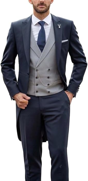 Men's Wedding Dress Suit Set Morning Suits Grooms Slim Fit Wedding Tuxedos Tailcoat Vest Pants
