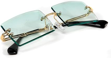 Mens Rimless Rectangle Gold Frame Blue Turquoise Gradient Tint Sunglasses